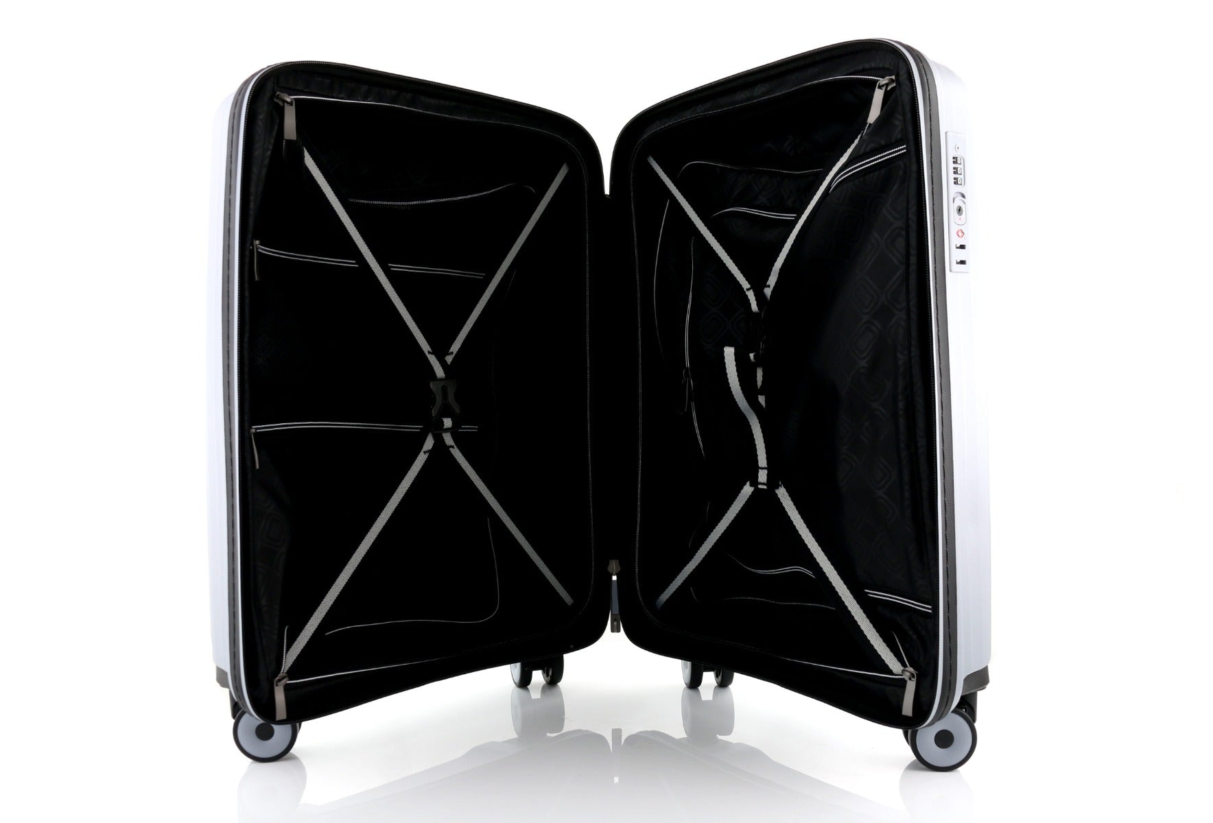 Der Mogens Hartschalen-Trolley bietet zahlreiche praktische Features, die Ihre Reise noch angenehmer machen. Im Inneren des Trolleys befindet sich ein Netzfach mit Reißverschluss, in dem Sie kleinere Gegenstände sicher verstauen können. Die Spanngurte halten Ihre Kleidung und andere Utensilien an Ort und Stelle. Zwei zusätzliche Reißverschlussfächer bieten zusätzlichen Stauraum für Ihre persönlichen Dinge.