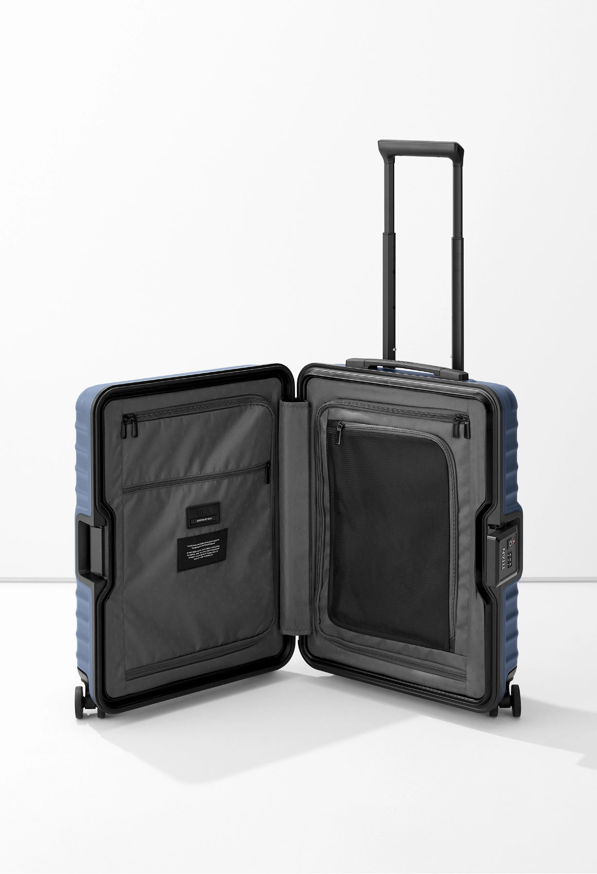 Our promise: you receive a suitcase that delights for many journeys and elegantly completes your appearance. Discover the Titan Overseas in black or blue and in your desired size – and start with the good feeling of being perfectly equipped.